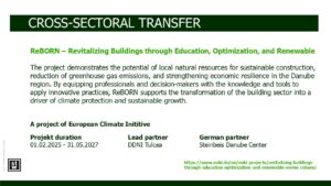 ReBORN – Revitalizing Buildings through Education, Optimization and Renewable Norms – is an EUKI-funded initiative that pioneers sustainable construction and renovation in Romania and Croatia. The project supports the transition from nearly Zero-Energy Buildings (nZEB) to Zero Emission Buildings (ZEB) by promoting the use of local natural materials such as reed and hemp as carbon-neutral building components.